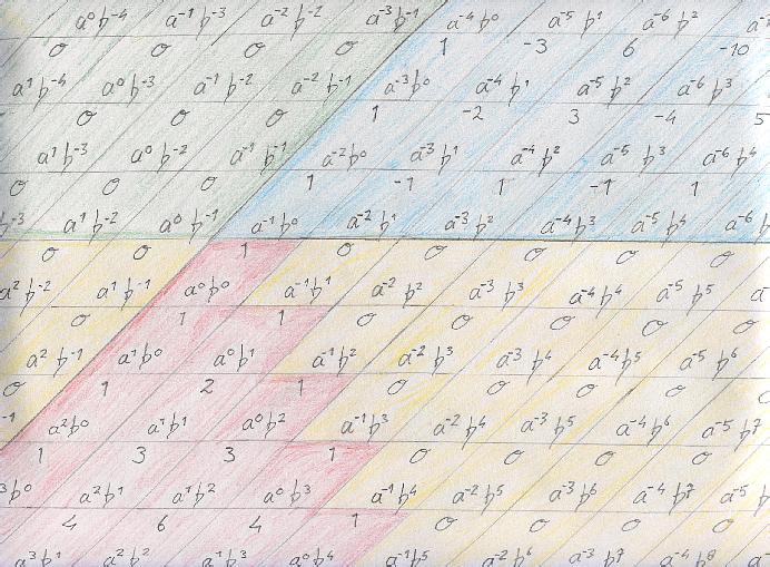 In essence 1.3T1M2.3 displays the distributive properties of addition, multiplication and the usual powers. We know the upper part of it as the Pascal triangle and the lower part as Newton's negative binomial.